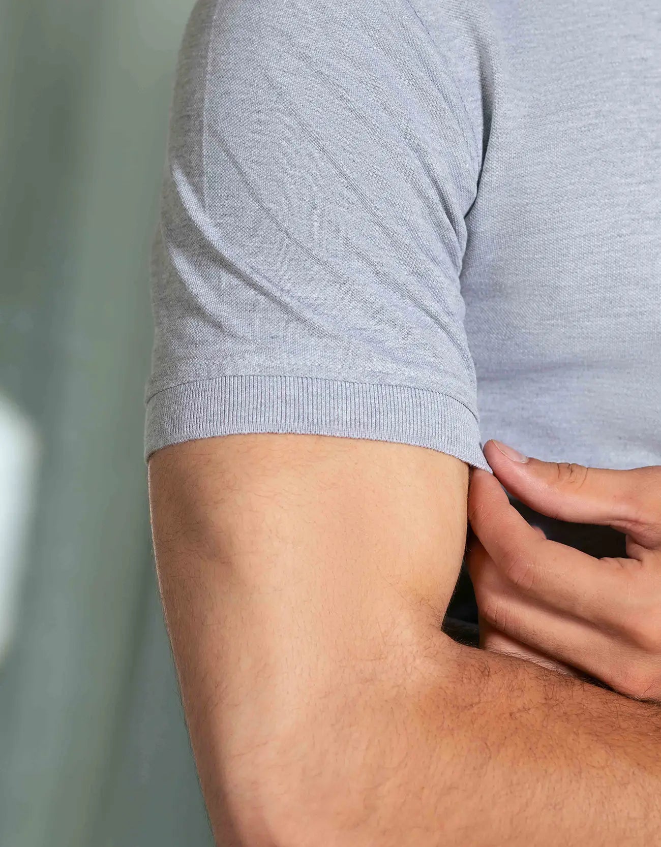 Men's polo shirt combines style and comfort with its breathable fabric and rib collar detailing. The cotton fabric provides a soft feel and allows for airflow. The rib collar adds a touch of sophistication and a classic polo look.
