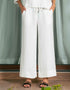 Loose fit wide leg trouser in muslin with cross pockets. Elasticated belt with drawcord fastening.