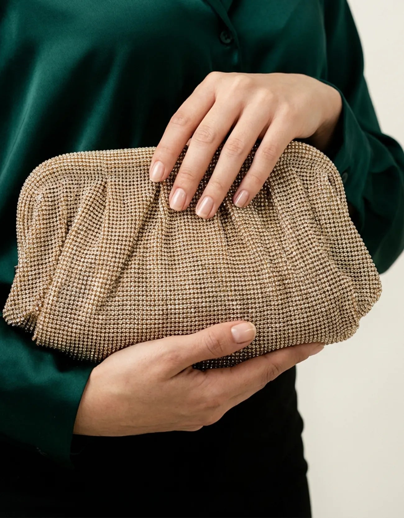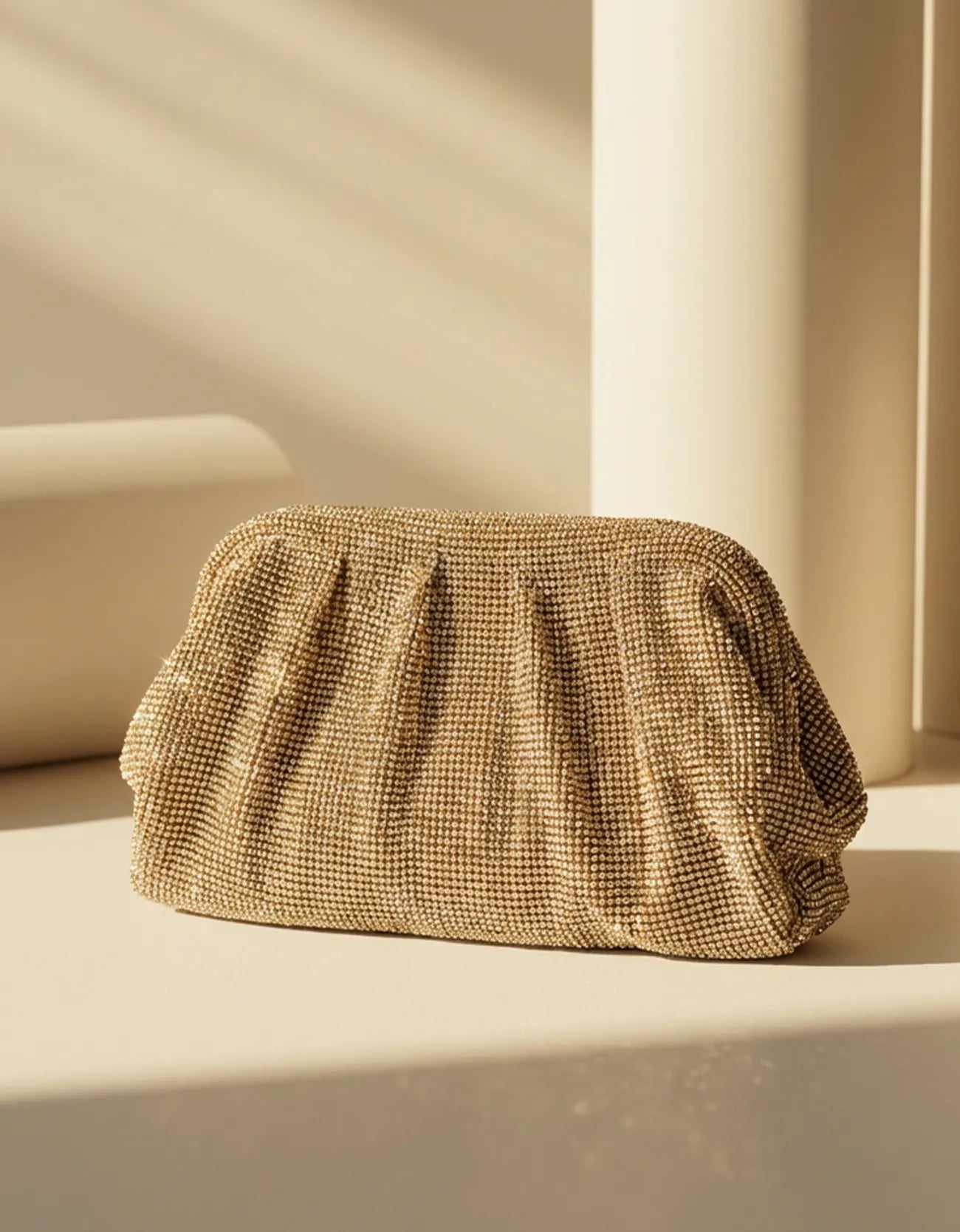 A shimmering golden pouch that adds instant luxe to any look— lightweight, chic, and irresistibly eye-catching.