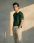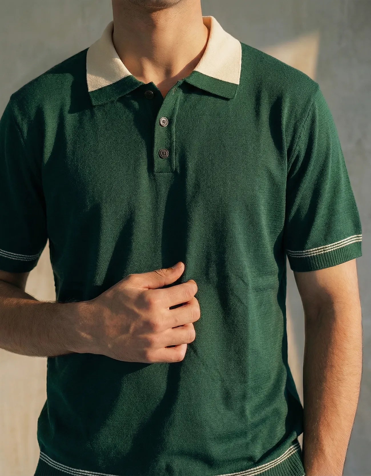 Relaxed fit contrast collar knitted polo with rib detail at sleeves, collar and hem. Short sleeves.