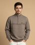 Relaxed fit woolen mock-neck quarter zipper with geometrical pattern detail at the shoulders and chest. Long sleeves with rib detail at cuffs and hemline.