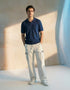 Relaxed fit ribbed textured johnny collar polo with dtm rib at sleeves, collar and hem. Short sleeves.