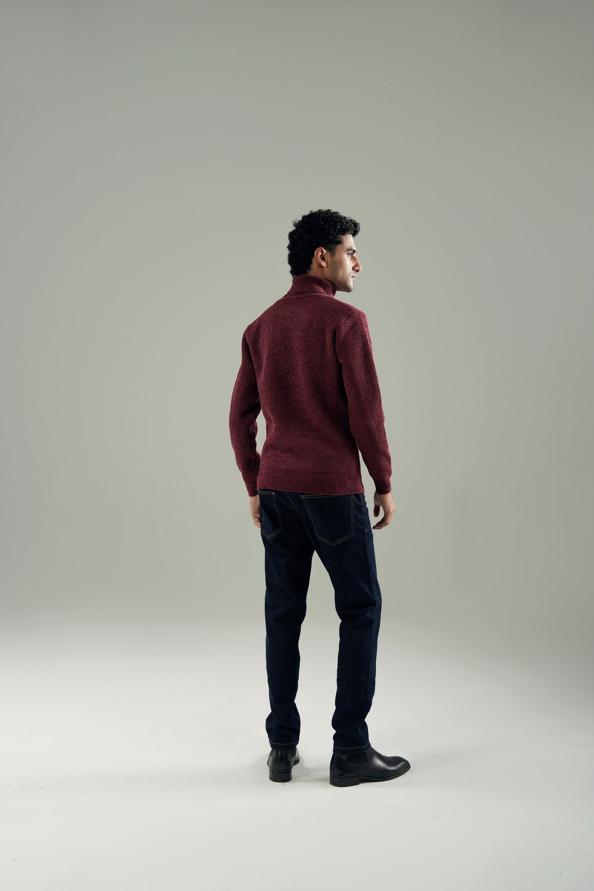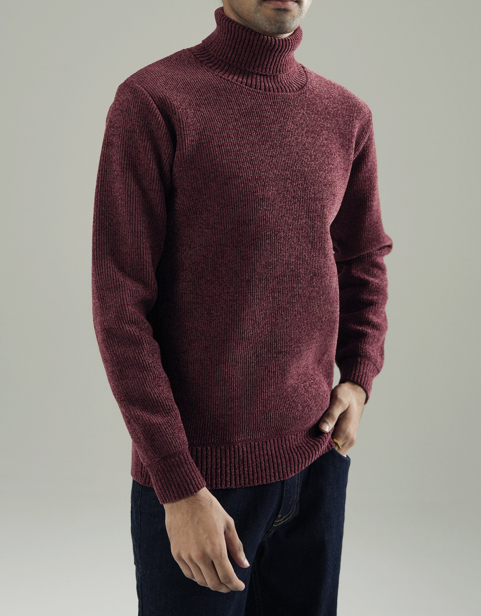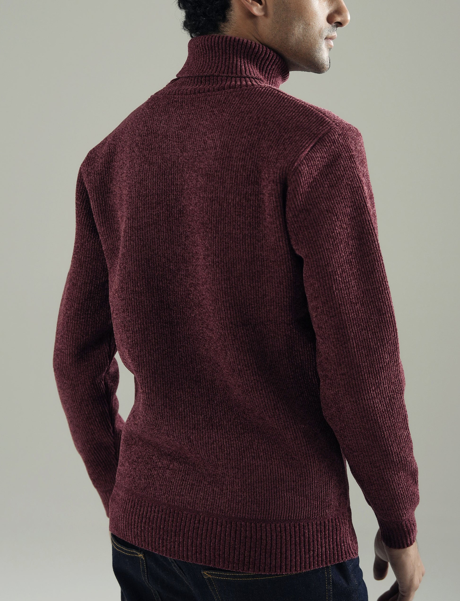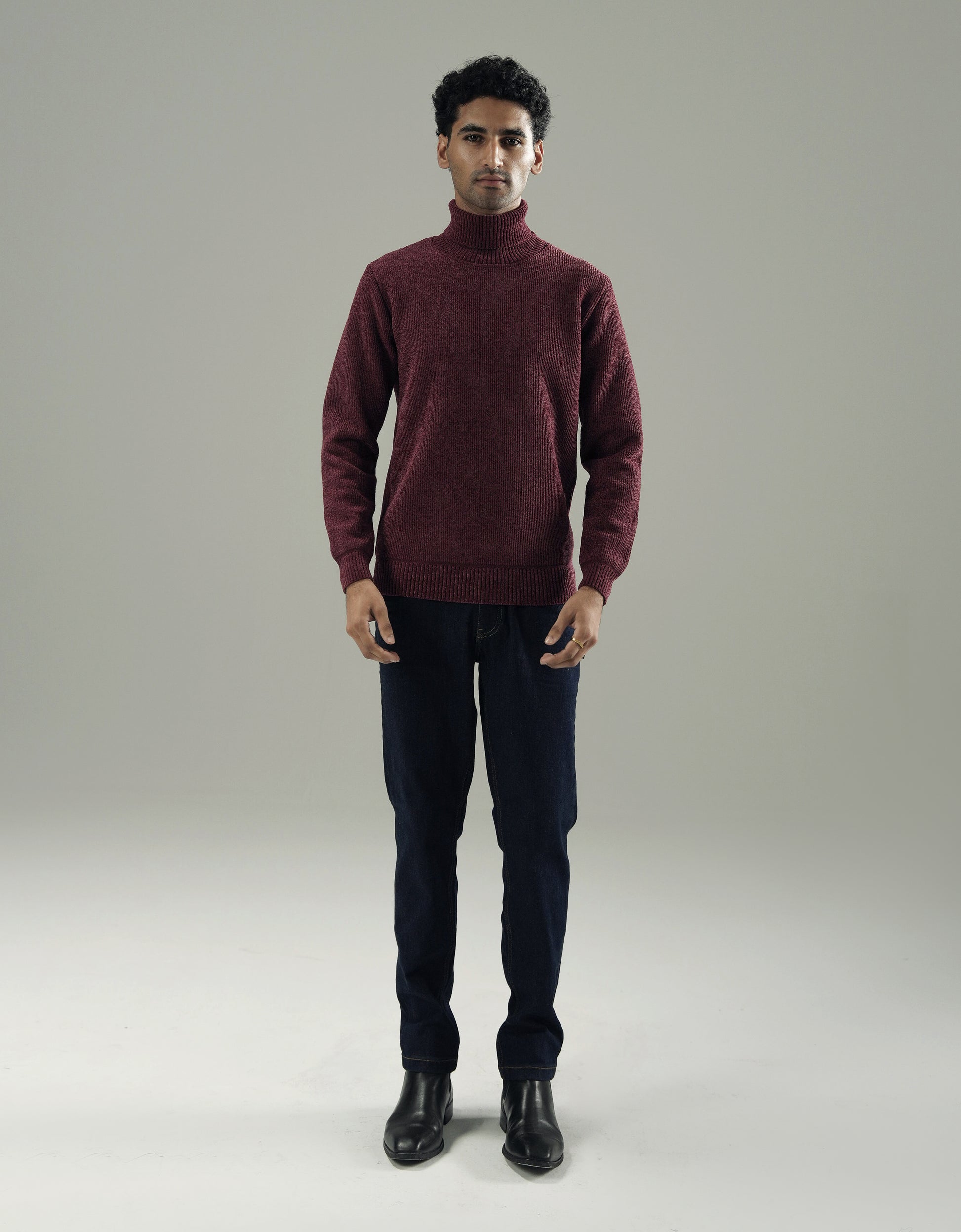 Loose fit textured unisex turtleneck sweater with long sleeves. Self rib detail on neck, sleeves and hemline.