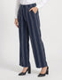 Straight fit flowy printed trousers with cross pockets and back patch pockets. Belt with elasticated back and front with zip and hook-eye closure.