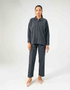 Shirt with collar and long sleeves with buttoned cuffs. Yoke detail at the back. Round hem and loop detail front button closure.