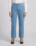 Women line textured wide-bottom pants with front single welt pockets and back patch pockets.
