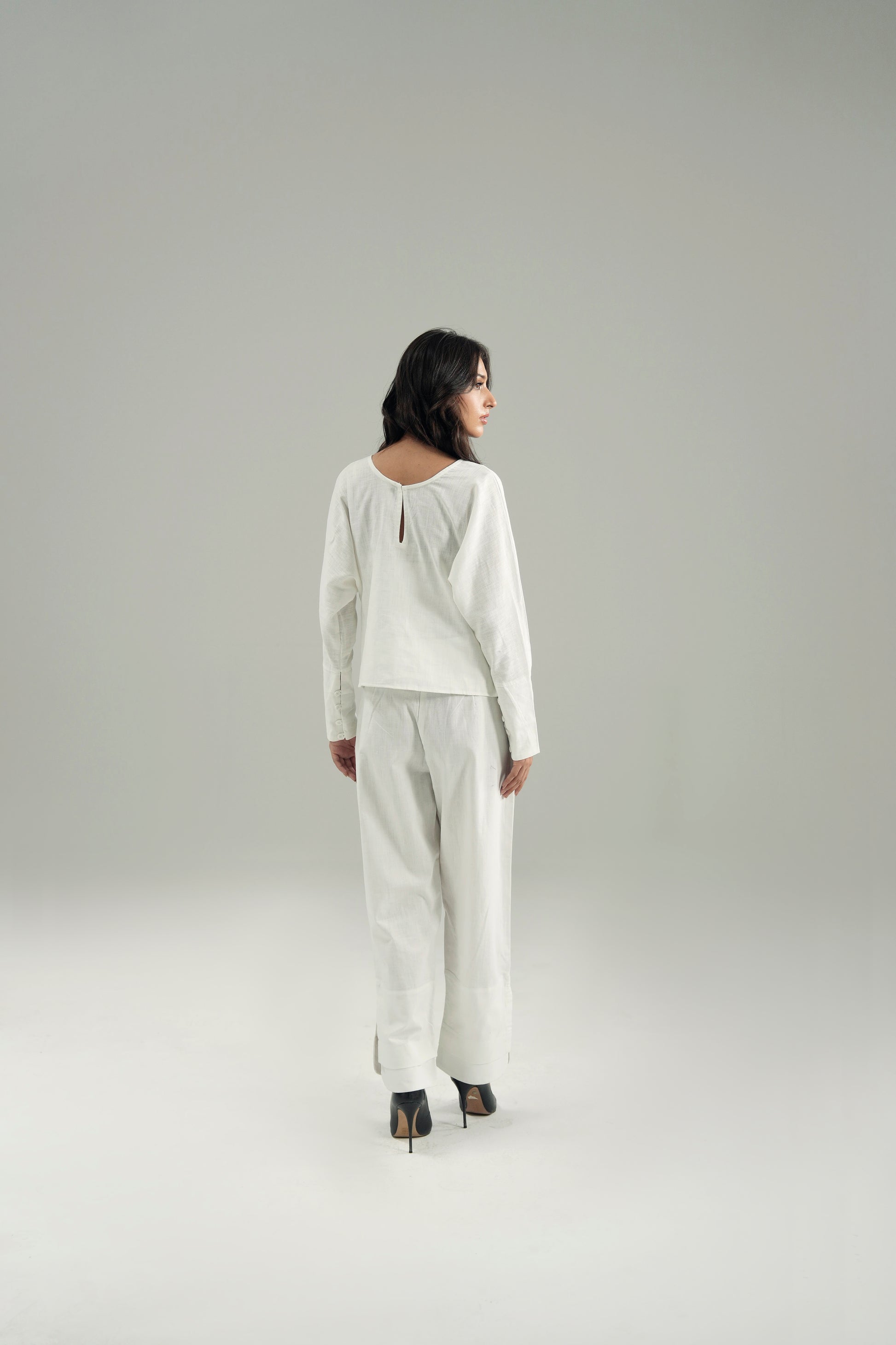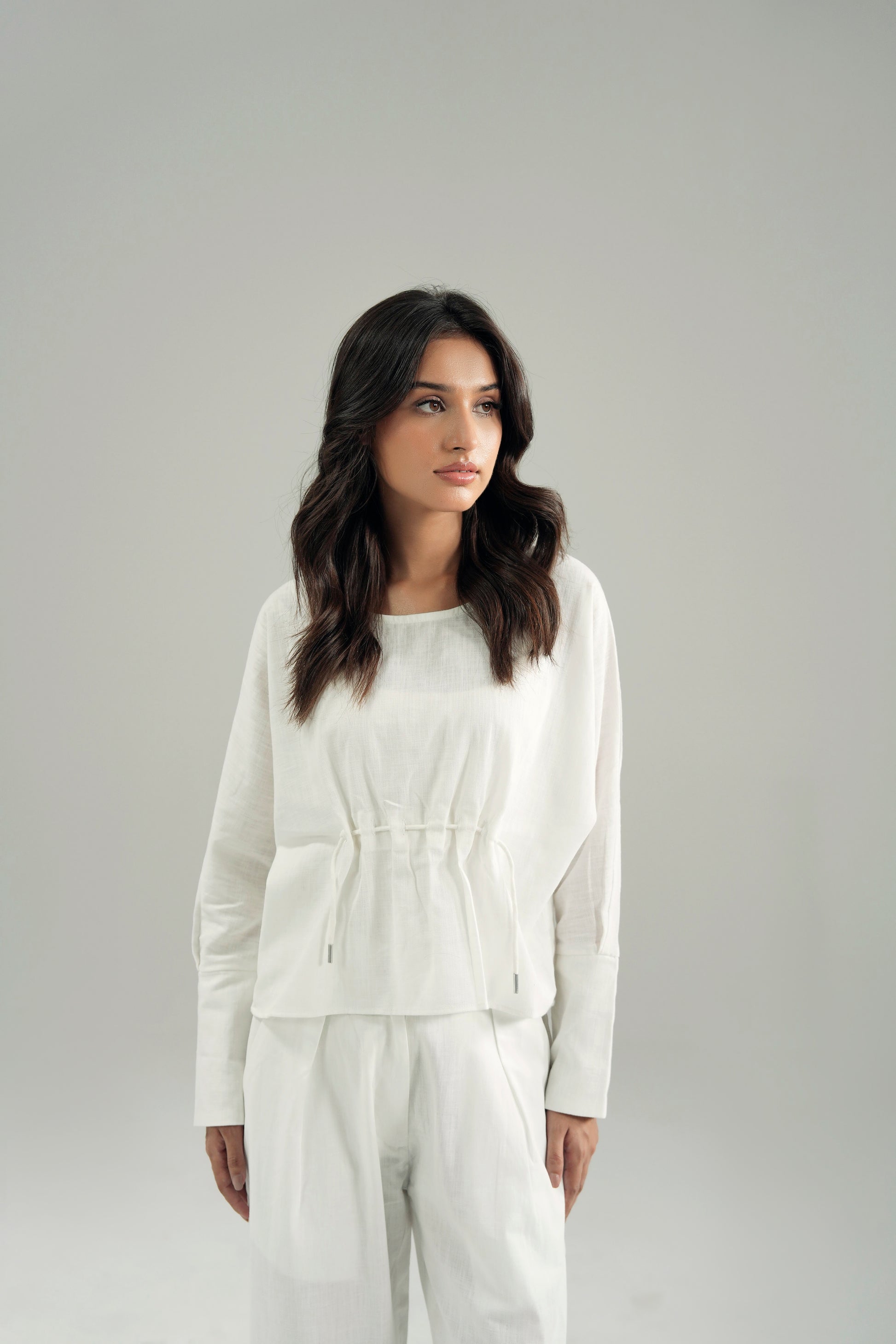 LINEN PLEATED BLOUSE WITH KNOT – Naya Dour