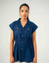 Loose fit coat collar shirt with front button opening. Sleeveless with extended shoulders. Elasticated detail at the waist. Flap pockets on the front.