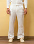 Relaxed fit trouser in textured fabric with cross side pockets and adjustable waistband and drawstrings. And a non-functional flyer on the front.
