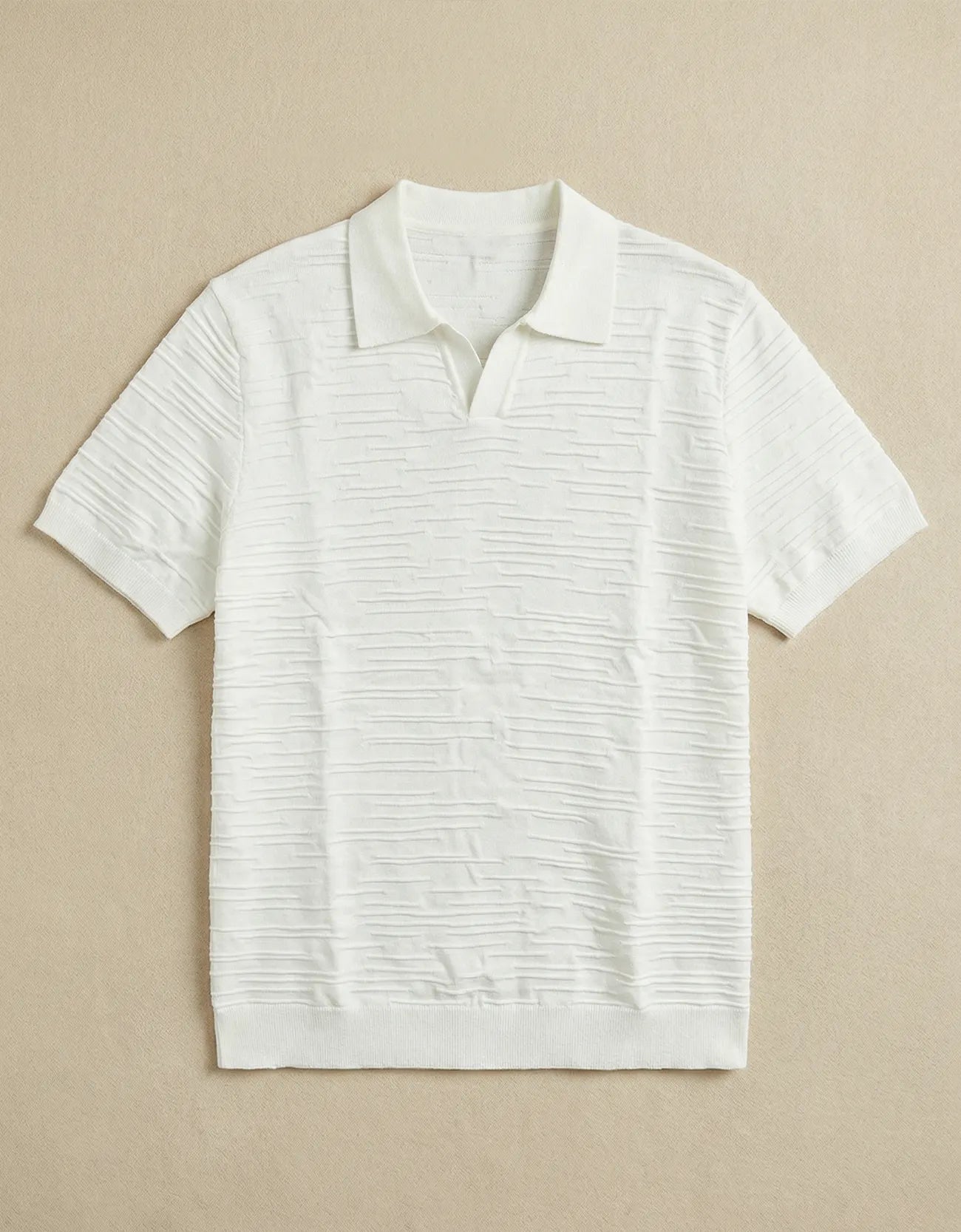 Relaxed fit textured johnny collar shirt and ribbed collar, sleeves and hem. Short sleeves.