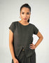 Regular fit round neck waffle textured top with cap sleeves and slit opening detail at the front.