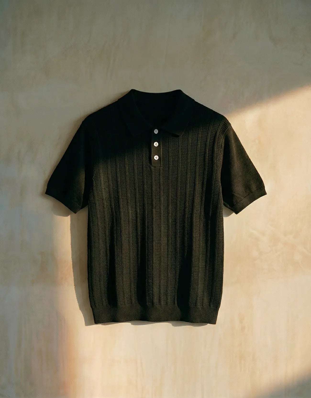 Relaxed fit textured soft rib shirt with DTM rib at sleeves, collar and hem. Short sleeves.