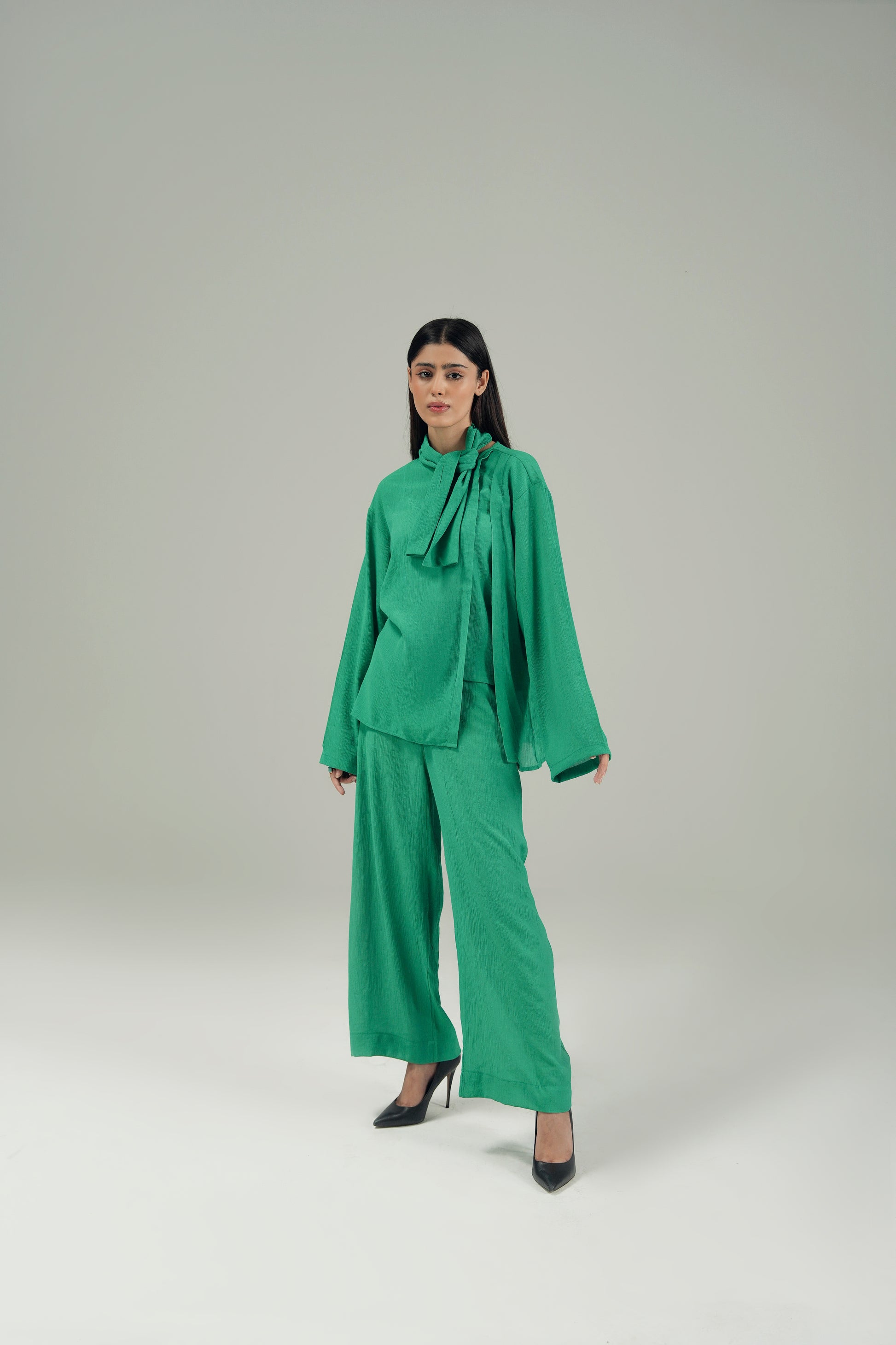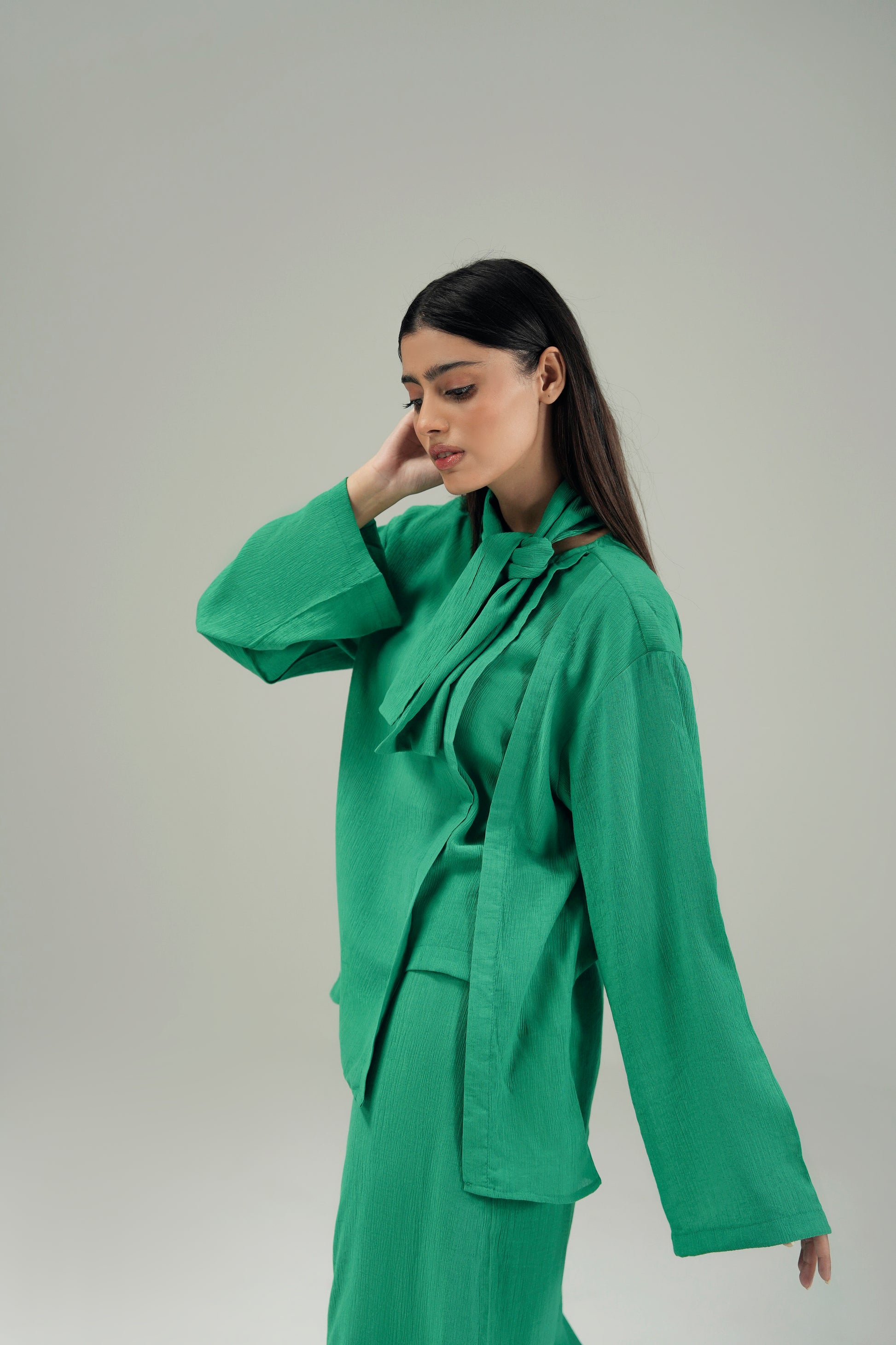 TEXTURED TOP WITH KNOT COLLAR – Naya Dour