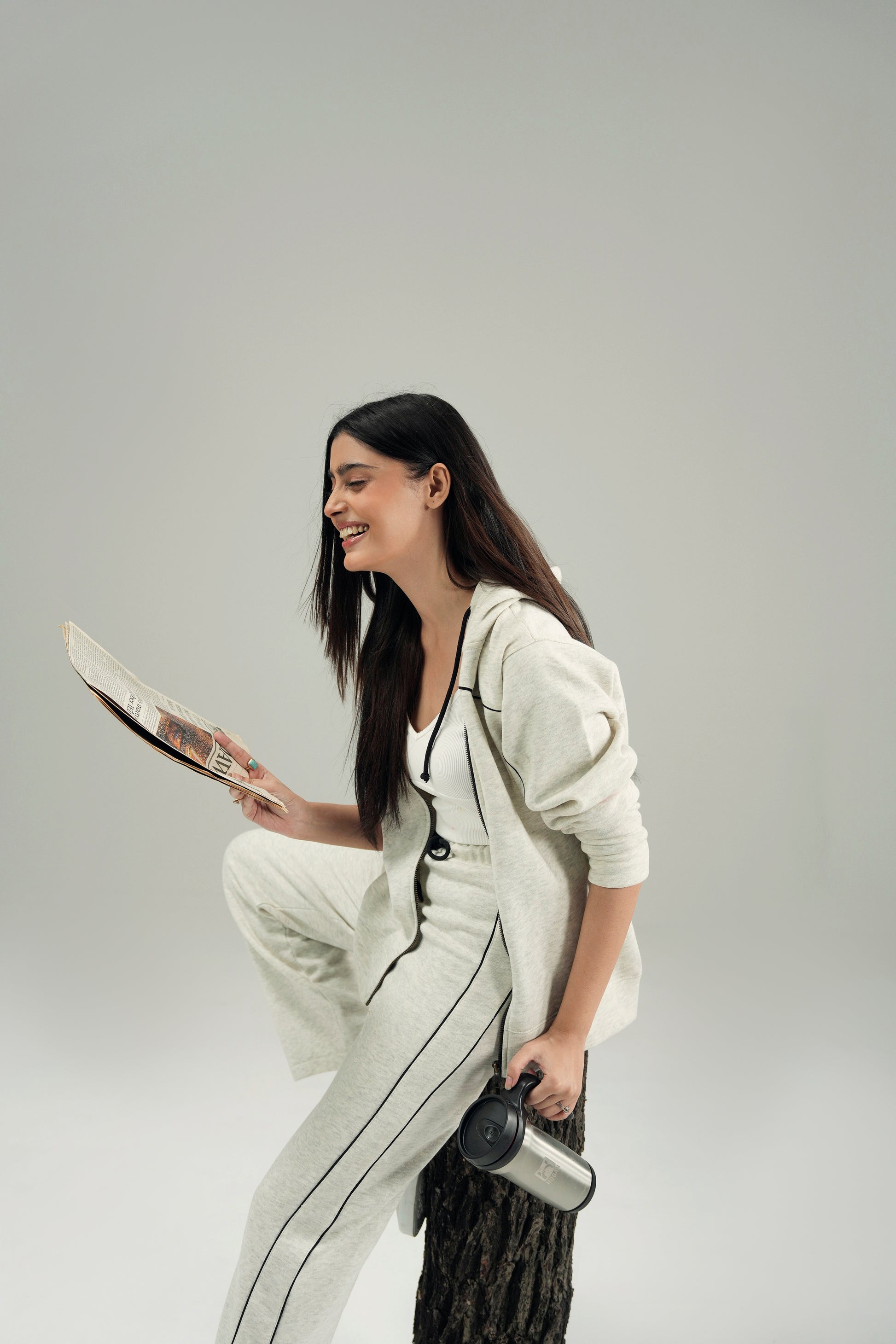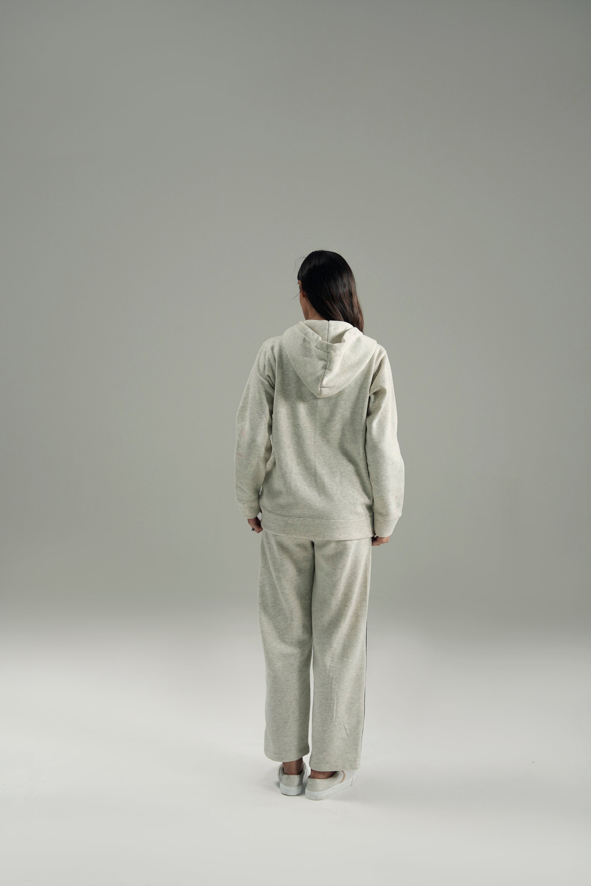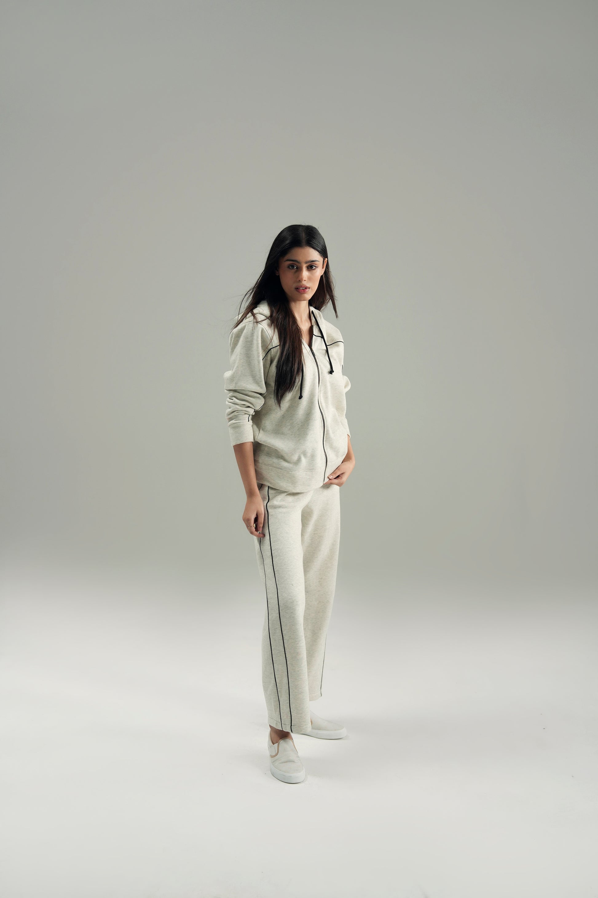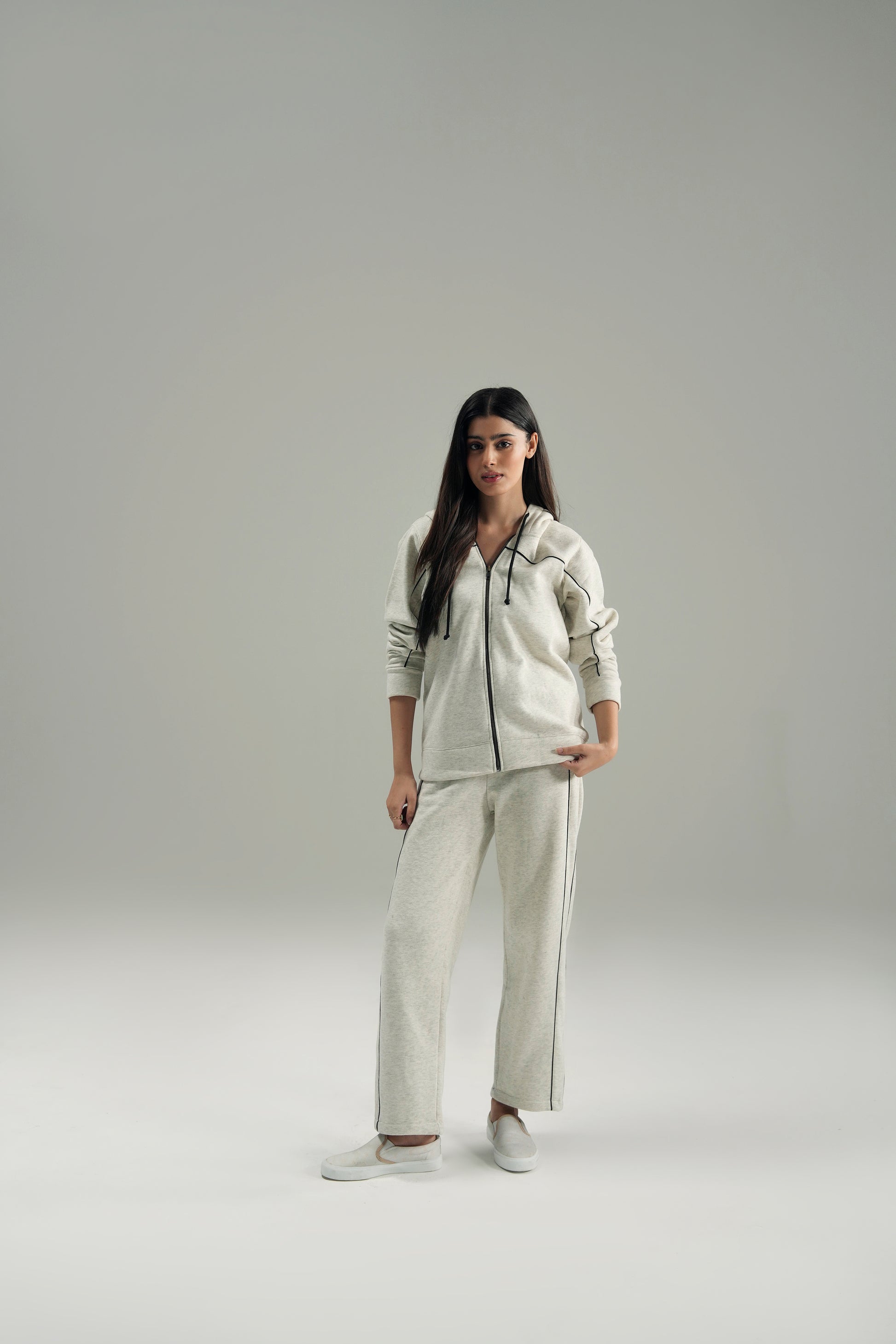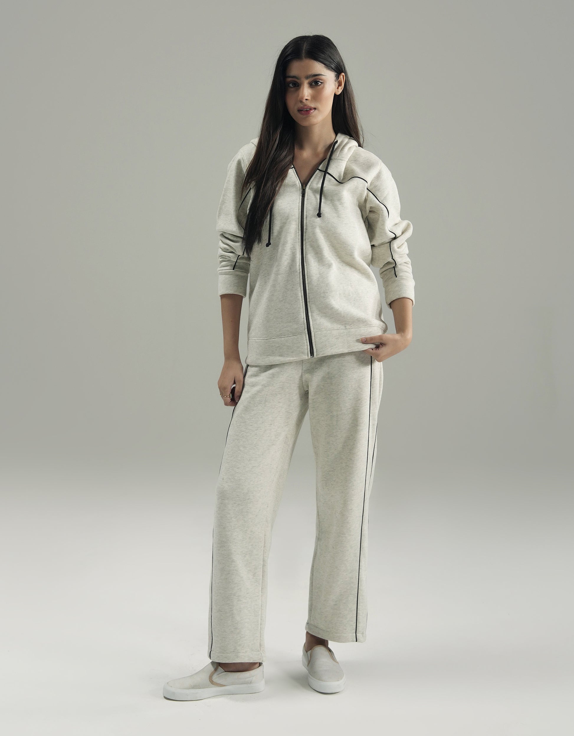 Fleece unisex hoodie with front zip closure and hood with draw cords. Front yoke with contrast piping detail. Long sleeves with cuff.